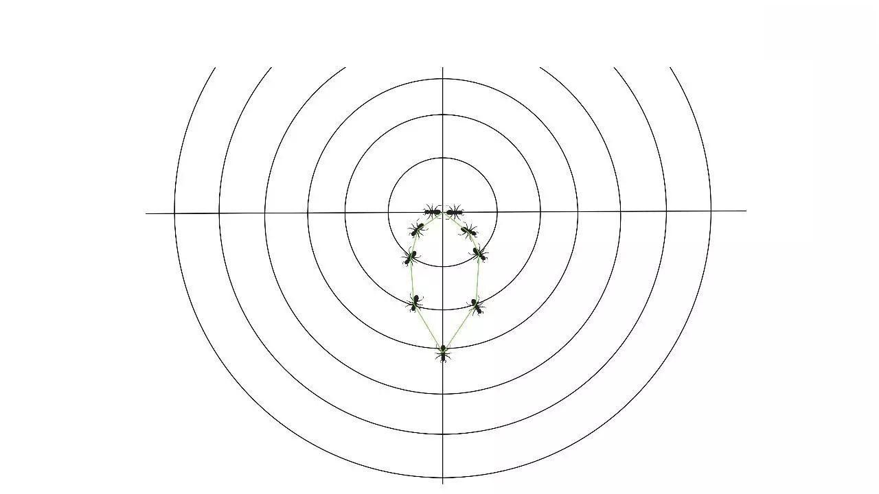 1st ,ants with different strength dragged their rubber bands to climb to different directions. Those with more strength climb far, while those with less strength can only climb closer.